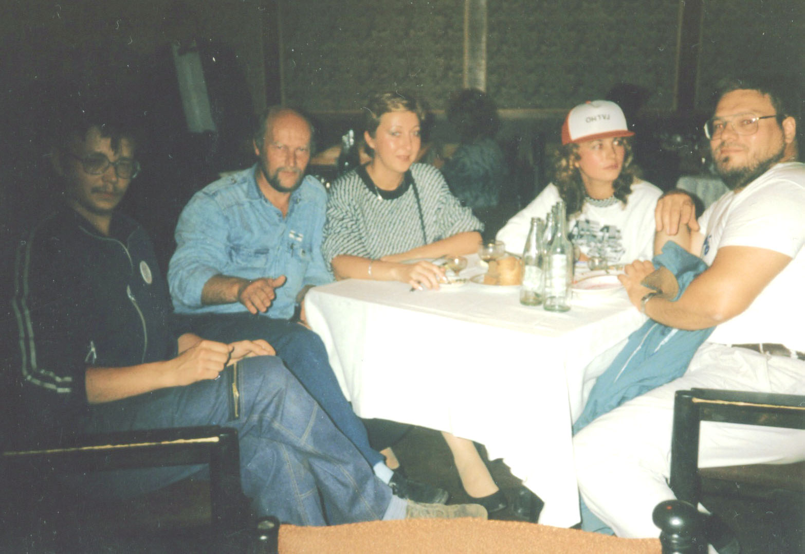 Illanviettoa. Vasemmalta Timo UA1ndx, Teuvo OH7RH ja oikealla Markku OH7VJ Vasemmalta Timo UA1ndx, Teuvo OH7RH ja oikealla Markku OH7VJ