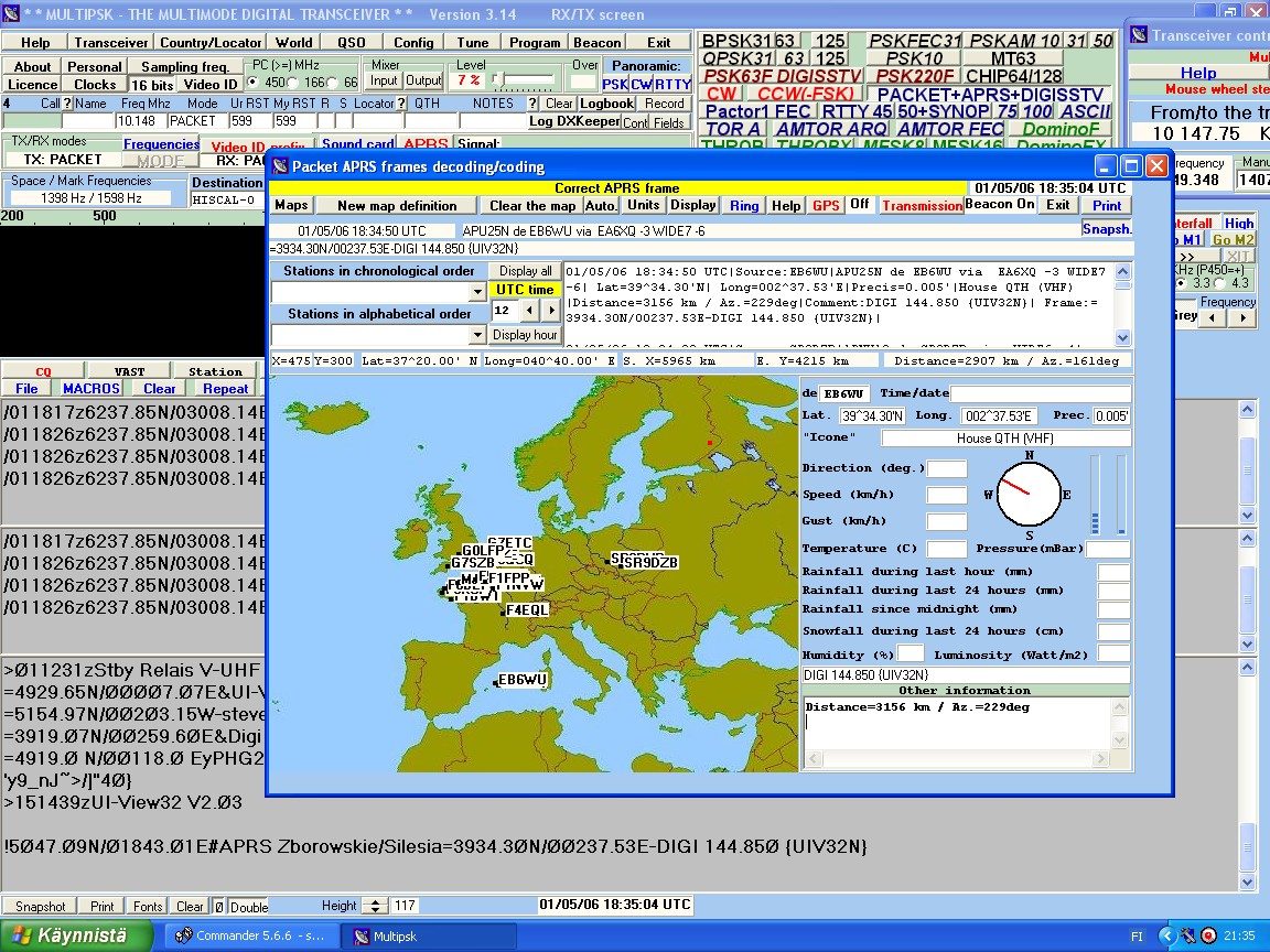 Aprs asemia 10 mhz taajuudella, software multipsk 3.14 ja ant. LK 99 (pituus 30m)
