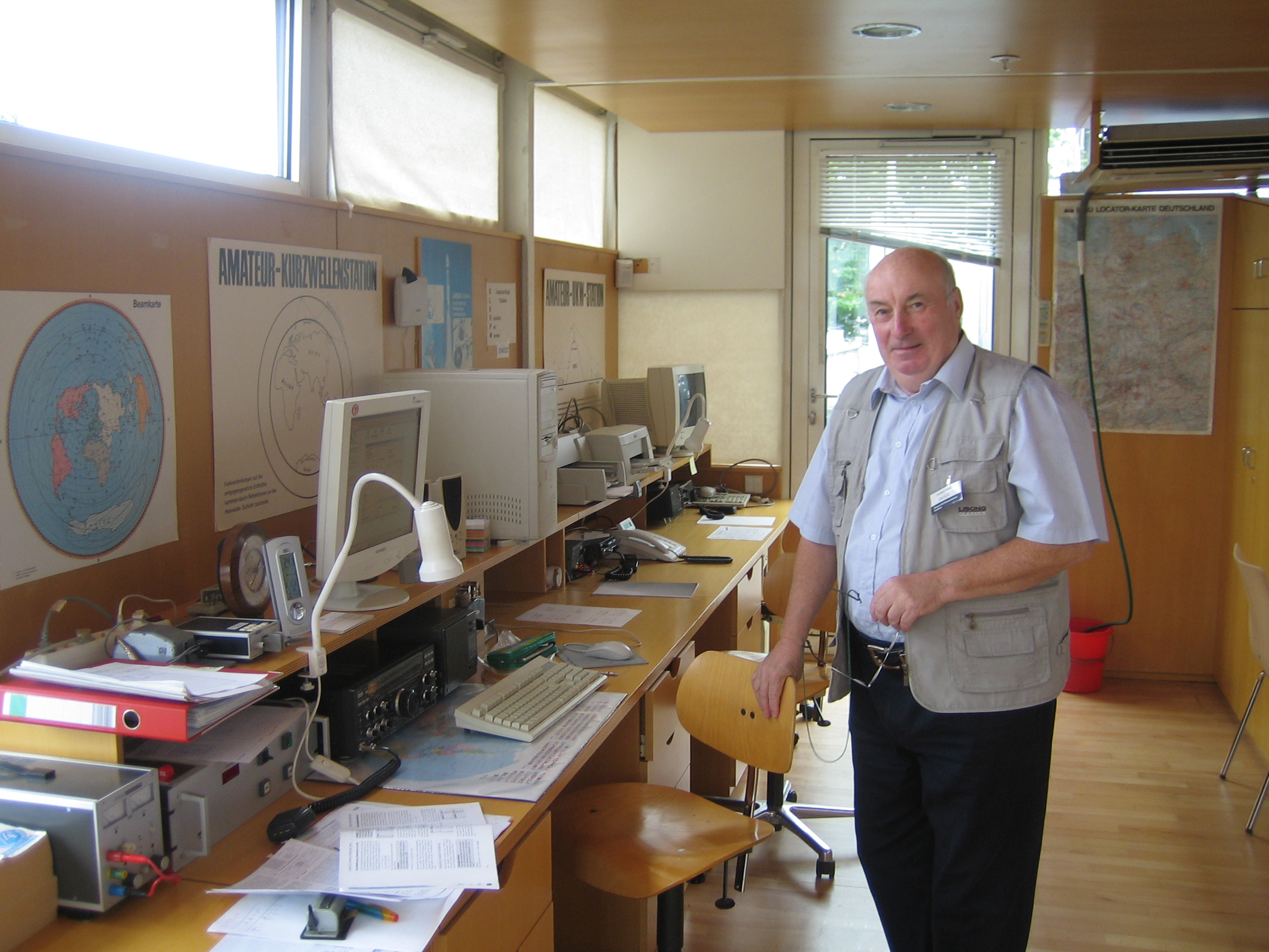 Frankfurt Main: DL0DPM kerhoasemalla poseraa Herbert. Kerhoasema sijaitsee telekommunikaatiomuseon yläkerrassa.