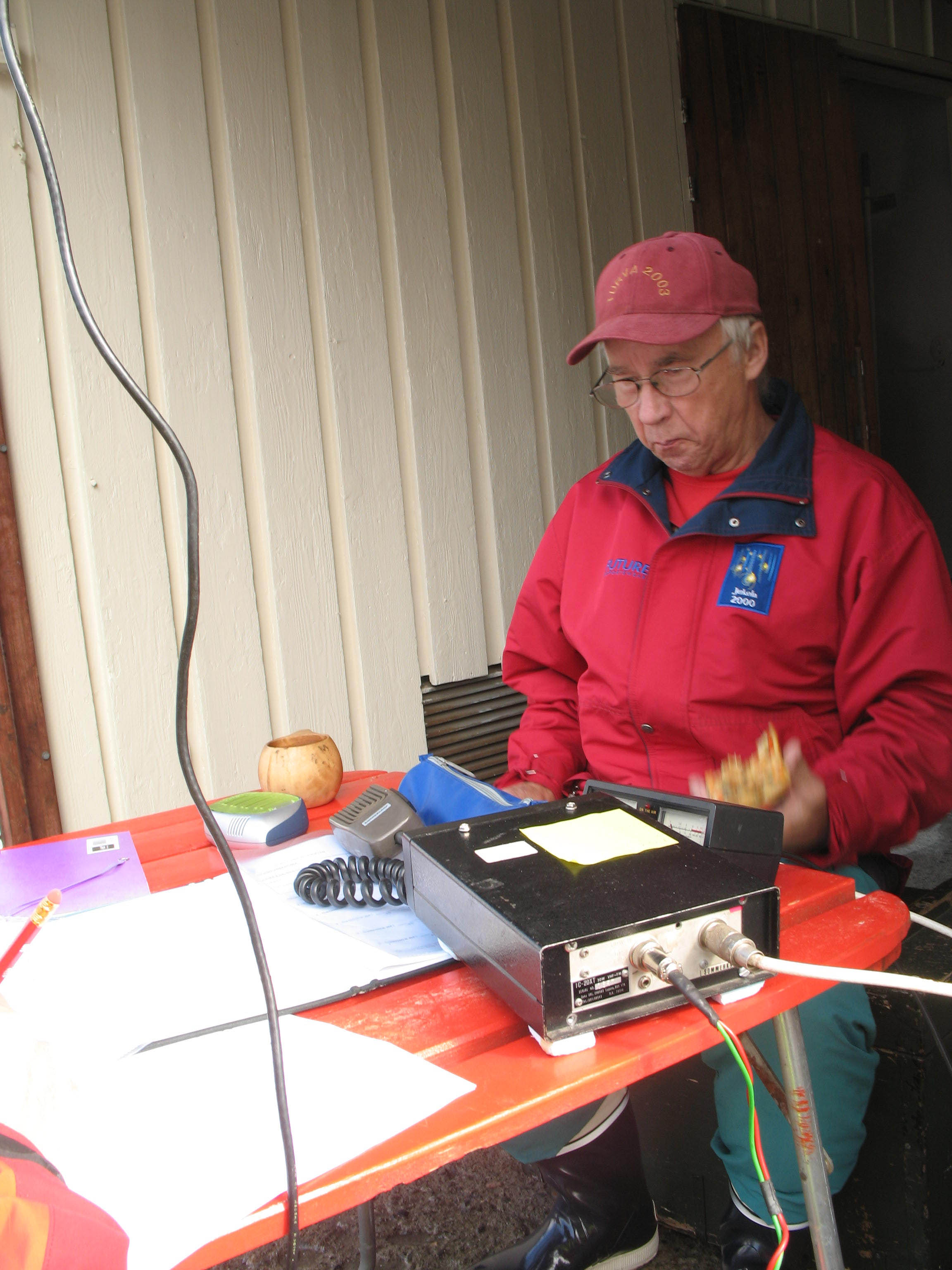 Kuvaus: Aseman radiona vanha IC-20 kidekone. Alpo miettii varmaankin asiakirjojen runsautta. Kyllä näitä viranomaisten papereita saattaisi oppia käyttämään kun harjoittelisi enemmän.