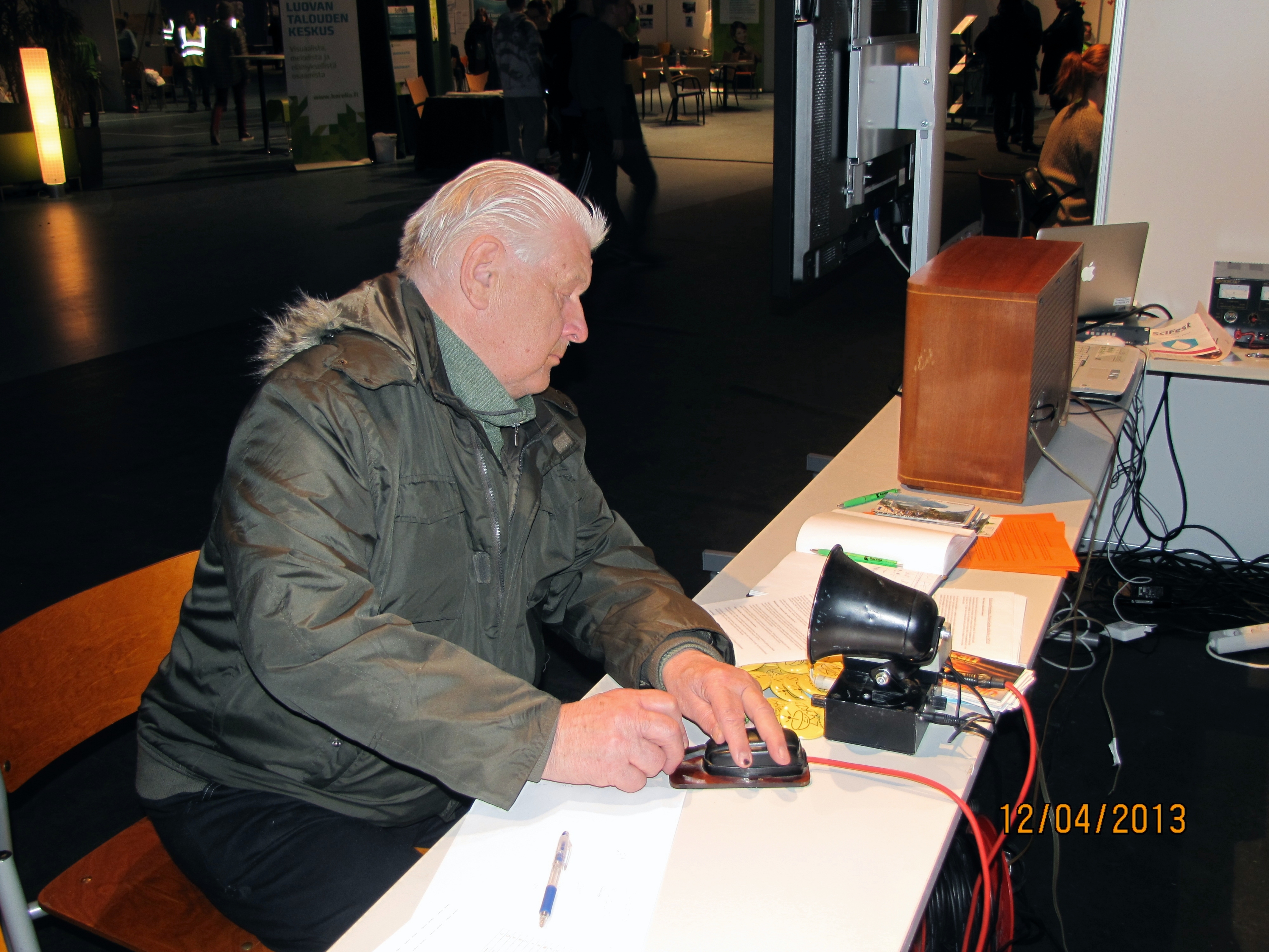 Soini OH7QK kokeilee cw-avainta [kuva oh7ne]